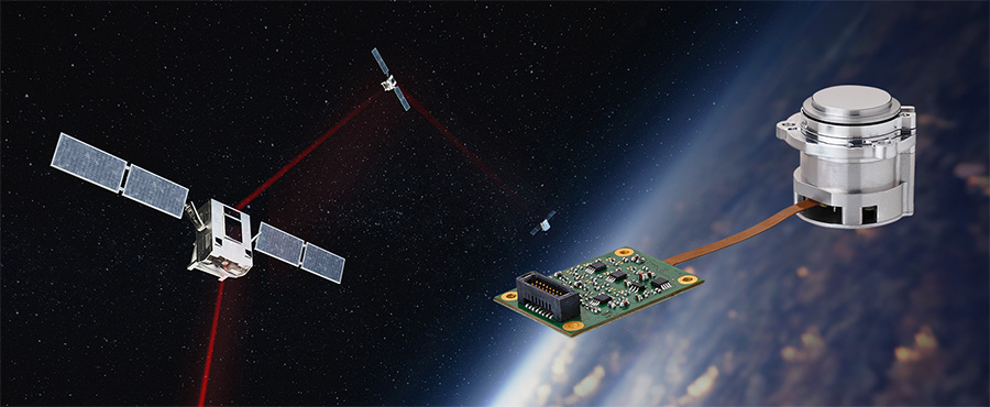 この動的なシステムは、高精度な渦電流式変位センサと、傾斜軸ごとに2つの電磁コイルから成るアクチュエータによって駆動する高平坦度ミラーを使用しています。高速ステアリングミラーは、2軸において極めて精確に制御することができます。中央の回転点によって、遊びや摩耗が生じない同期した動きが実現されます。FSM3000 高速ステアリングミラーシステムは堅牢性、小型設計、そしてわずか約55 gの軽量さで高い評価を得ています。ミラーは卓球ボールほどの大きさです。そのため、組み込みが容易であるだけでなく、極めて高い耐久性も備えています。衛星に搭載された高速ステアリングミラーシステムは、ロケット打ち上げ時の強い衝撃や振動にも難なく耐えられ、軌道上で極めて正確かつ確実に動作します。